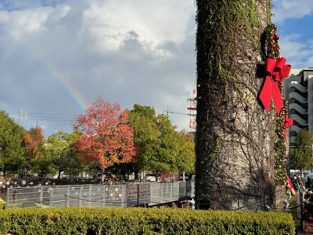 最近、近所を歩いているときにみつけた紅葉と虹とクリスマスの風景。
