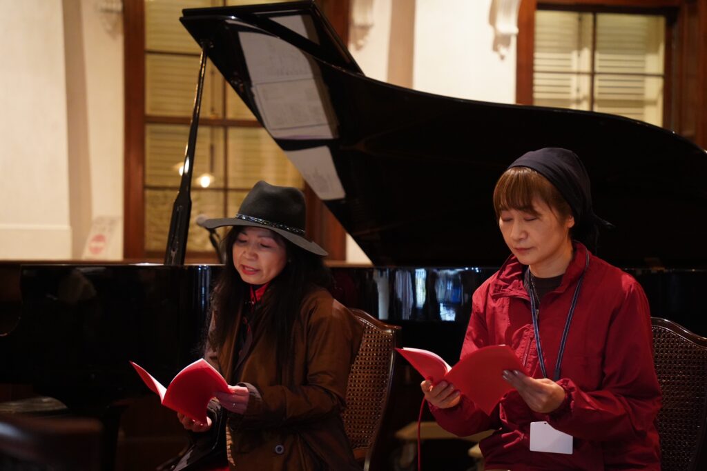 朗読劇も初披露。写真の右は、その脚本を仕上げてくださった 作家の滝本祥生さん。