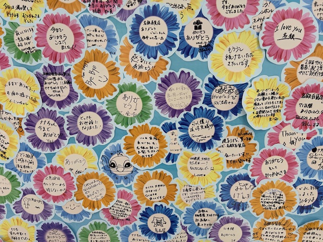 したり、ありがとうのメッセージをシールに書き、壁に貼る方の姿・・・。