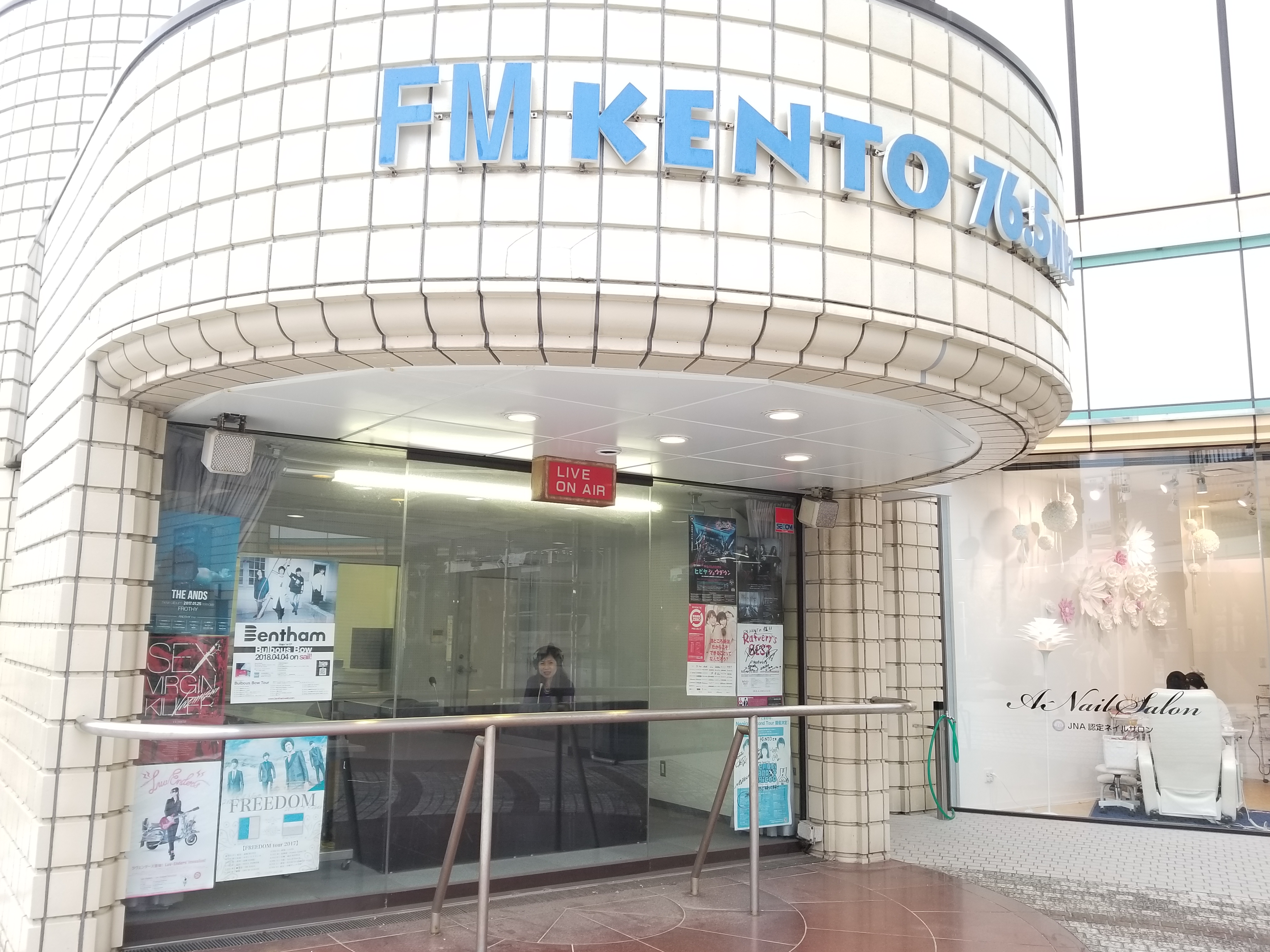 リスナー&ゲストに撮影してもらった。スタジオのガラスが反射しているが、懐かしくかけがえのない1ショット。