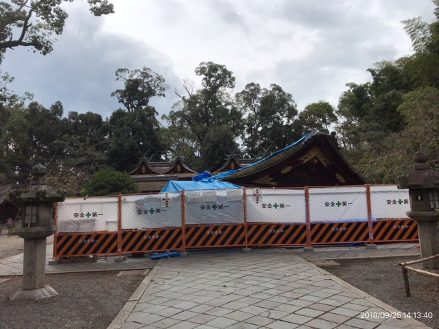 先日の台風21号で、まさかの大被害が 京都の神社にも及んだ。