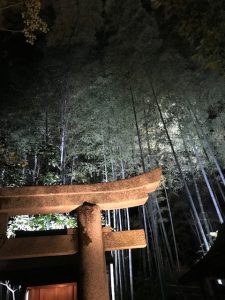 まずは、お堂の中から、ライトアップされた庭を見る。