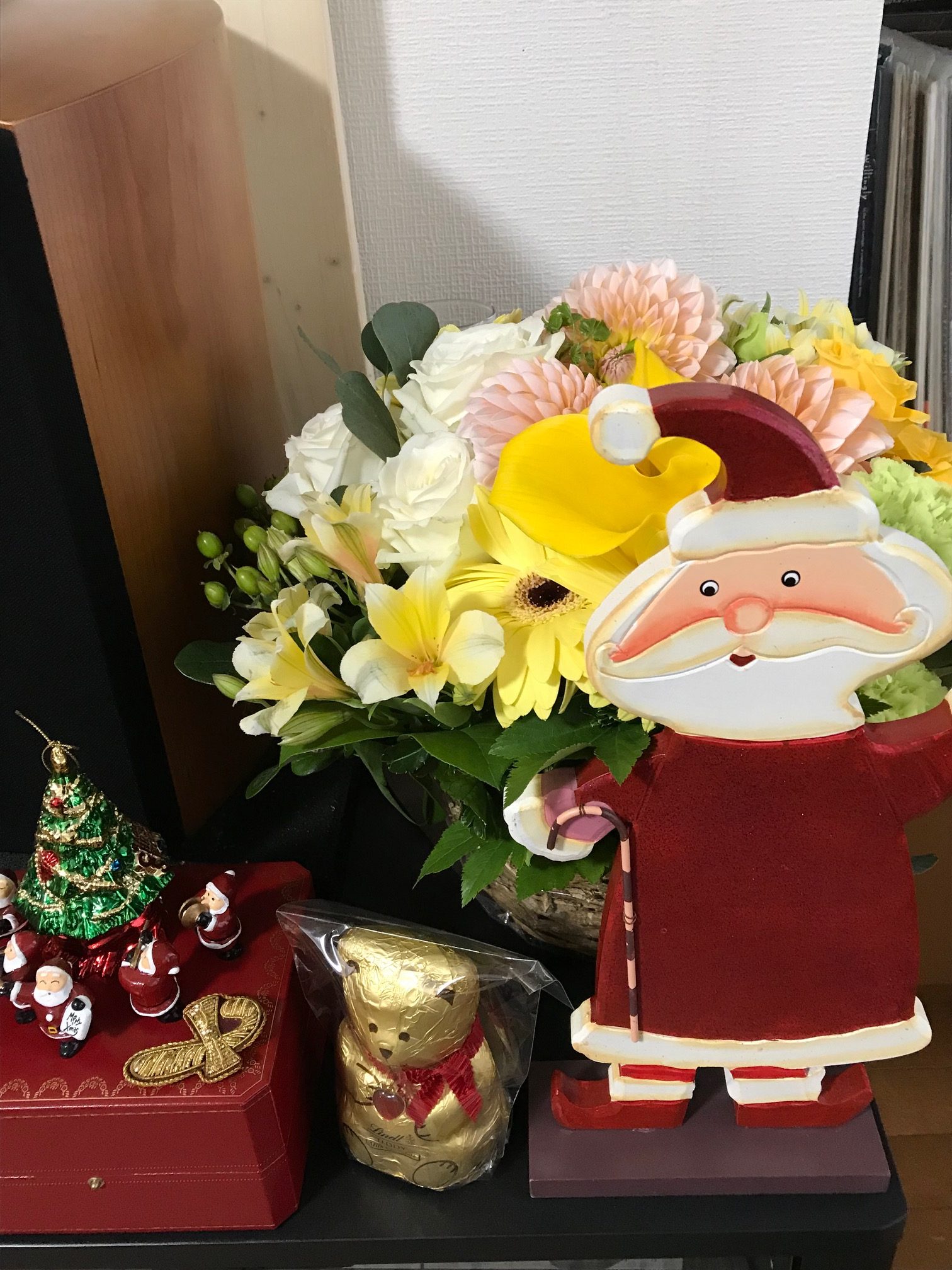 自分では買わないかわいらしいお花のアレンジが届いた。