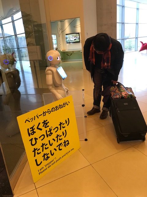 あるホテルのペッパー君の横には大きなPOPが。
