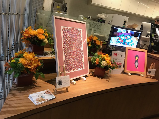 障がい者の方の素晴らしい作品が都内10店で合計50点鑑賞できる、MOSのお店ごとに違った作品が楽しめる、新しいアート空間の誕生。新たなコミュニケーション、ふれあいの場が生まれるように願いを込めて企画。
