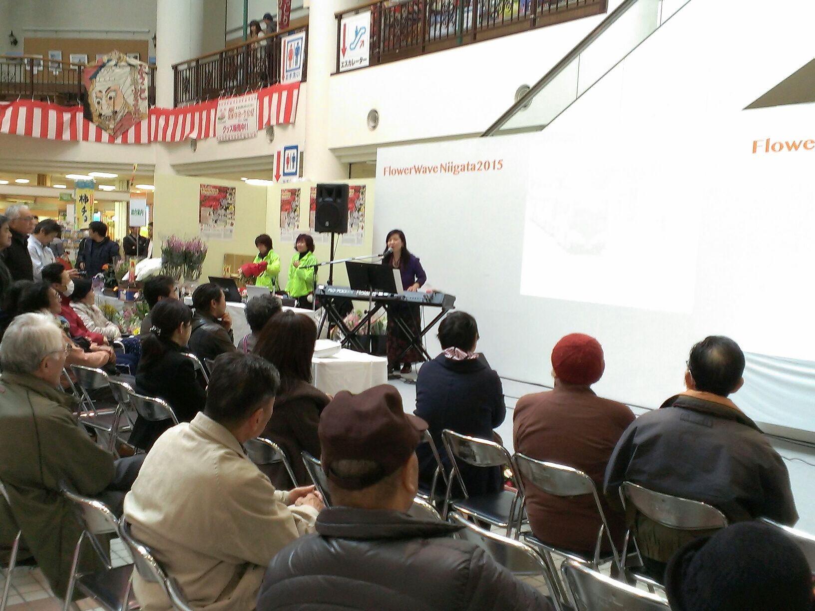 どう見ても花より団子に見える私が花のイベントのステージに。。。というのは大変場違いであるが、それでもそのイベント~フラワーウェイブ新潟イン2015~でのステージ初日が無事終了した。