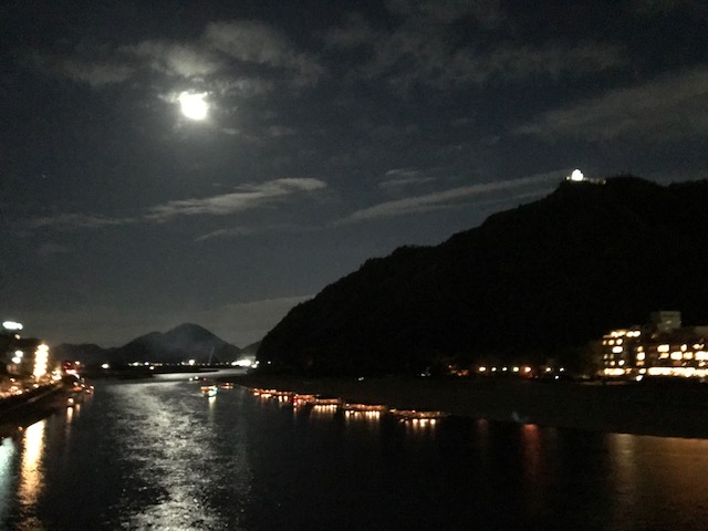 花火が終わり、再び鵜飼い船と、大きな月と、そして岐阜城が浮かび上がってこの世のものと思えない世界を映しだした。