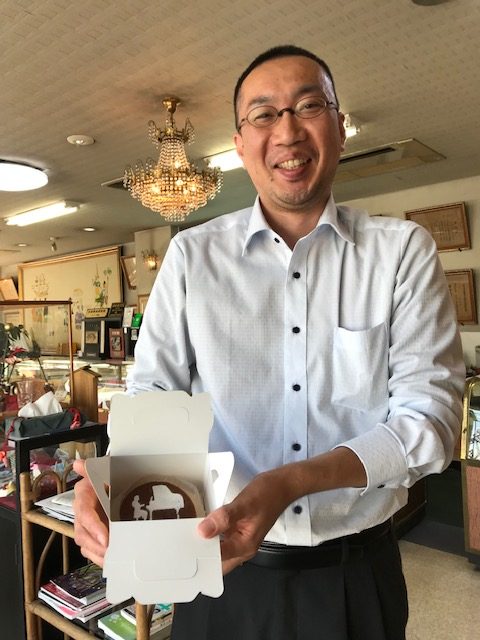 当店ではイートインもあり、そこでは手作りケーキも提供しているが、このシルエットが入ったケーキは新商品のようだ。いろんな絵柄ができるそうで、ショーケースに入れておくとお客さんが好きな絵柄を選んで、召し上がるそうだ。