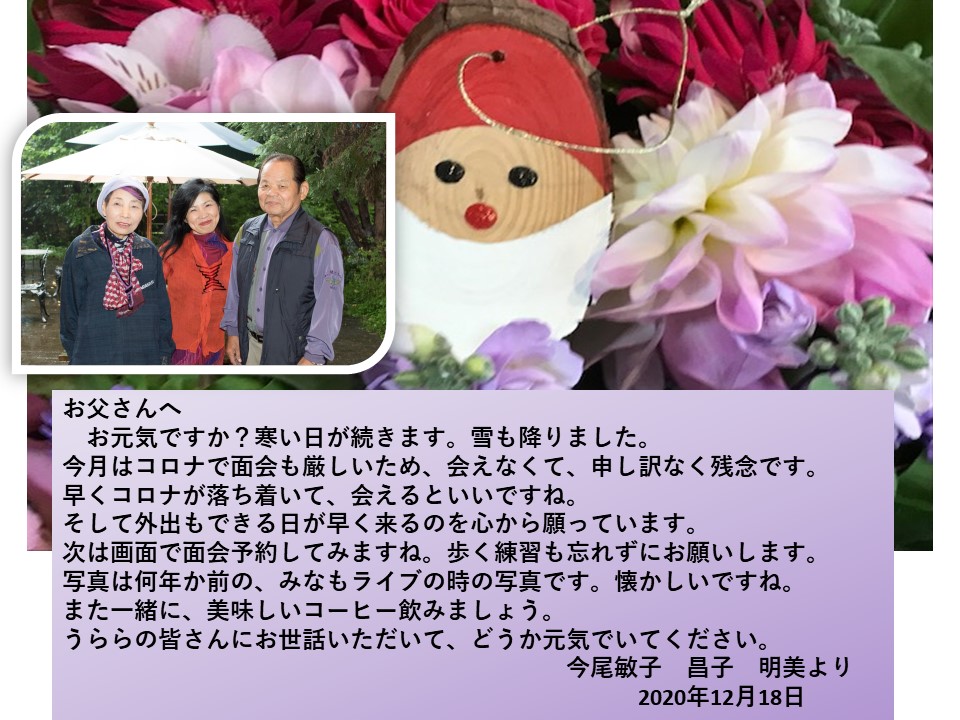 ※添付は、サインをする前の手紙。サインしたものはすでに施設にお届け。