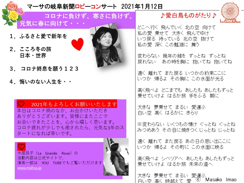 今年初めのミニコンサートです。(岐阜新聞本社ロビー 予約制 本日満席)
