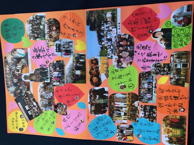 A3サイズ。画用紙を張り合わせ、そこに8名のみなさんのメッセージや写真のコラージュ。まさに寄せ書きだ。