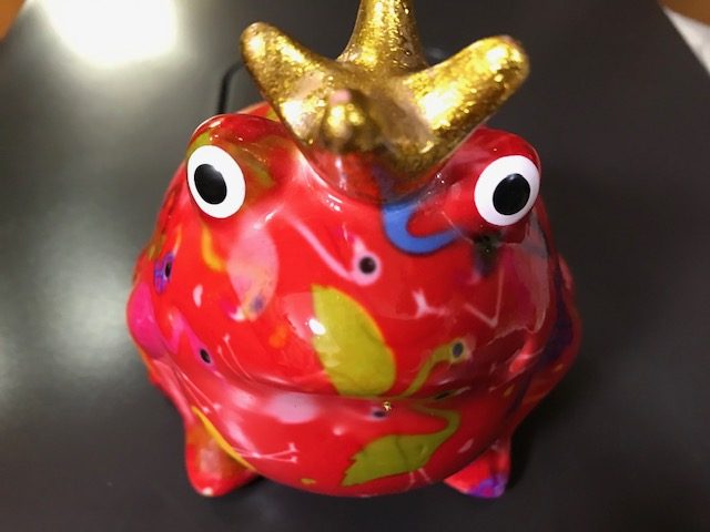 写真は最近みつけた、かえるの置物。貯金箱らしい。