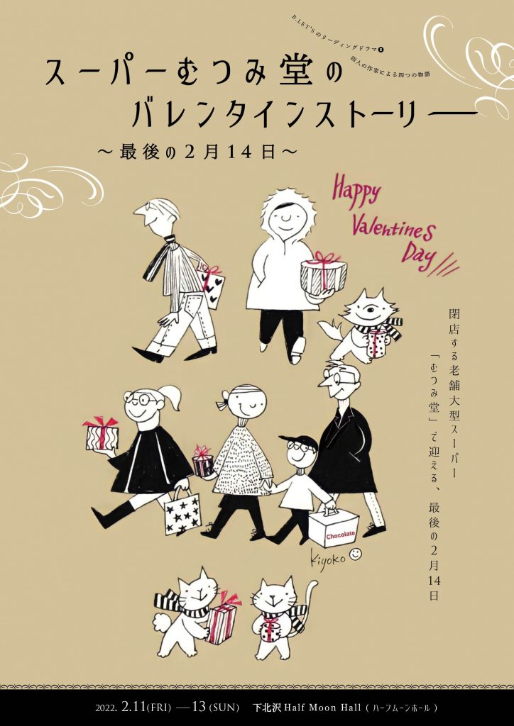 そこで迎えた最後のバレンタインデー、2/14に起こる4つの奇跡。閉店する老舗スーパーを舞台に、ラジオドラマを手掛ける4人の女流作家が、手練れの俳優たちと作りあげる言葉の世界。朗読劇で送る4つの短編ストーリーをお楽しみください。