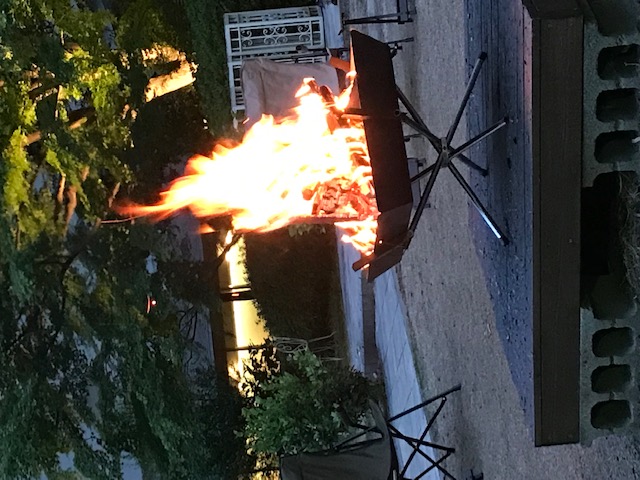 敷地内の中庭で、夕方から焚火をしてコーヒーを
