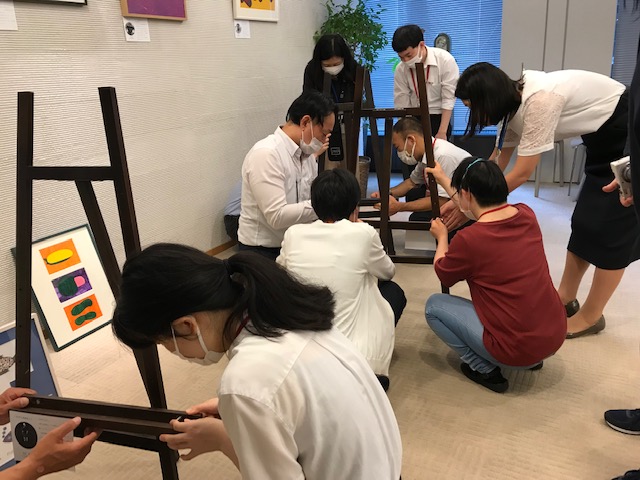 その企業で働く皆さんと一緒に飾り付けを行っていく。