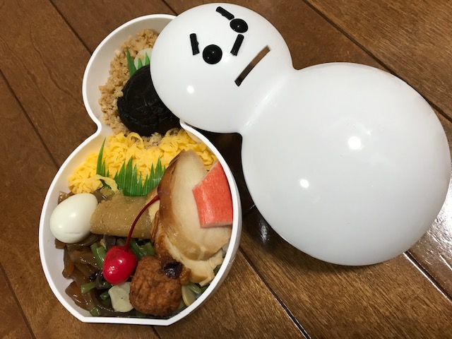 ゆきだるま弁当。雪国のみなさんのやさしさが、じんと伝わってきた。