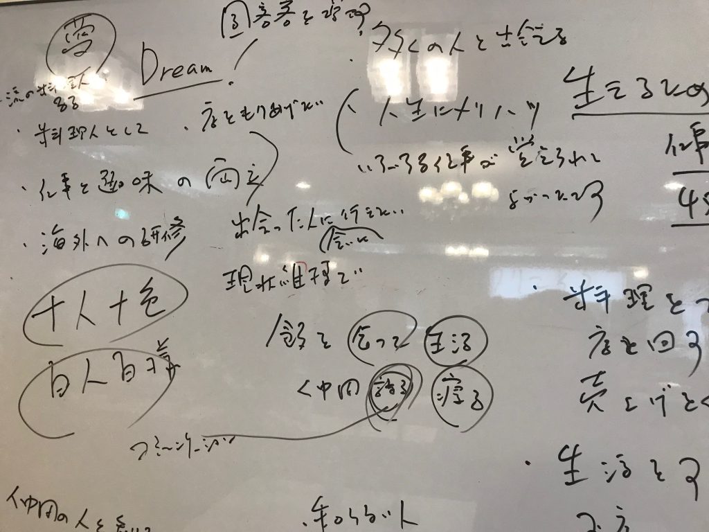 写真はそのときに出された意見をホワイトボードに書き出したメモ。