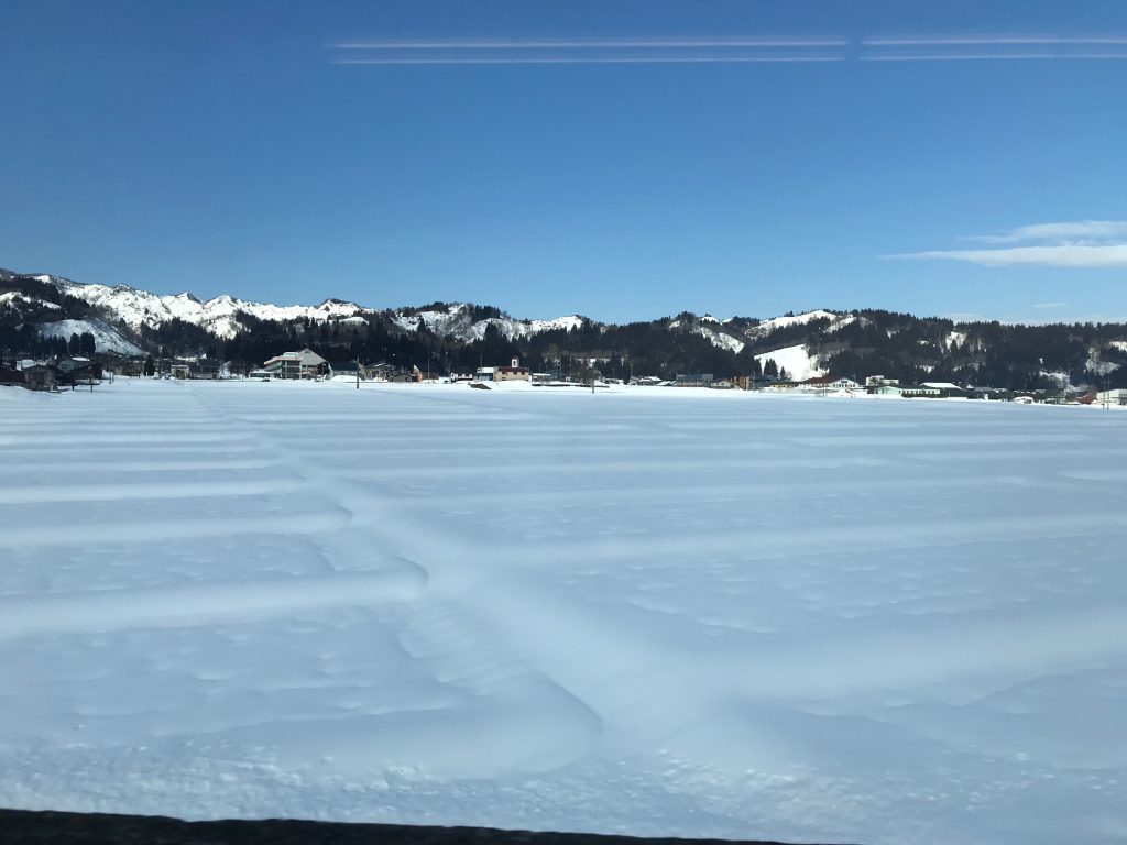 夏には広々と広がる、色鮮やかな緑の田んぼが実に美しく、収穫の季節が楽しみになるが、雪化粧を施したこの真っ白な世界も、夏に劣らず美しい。