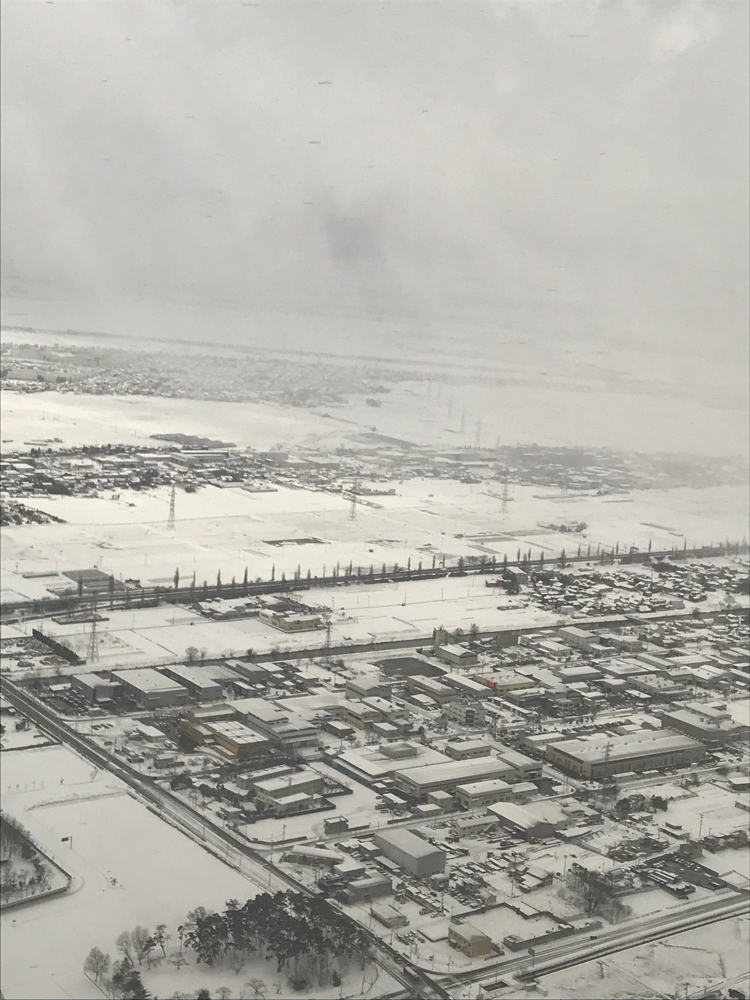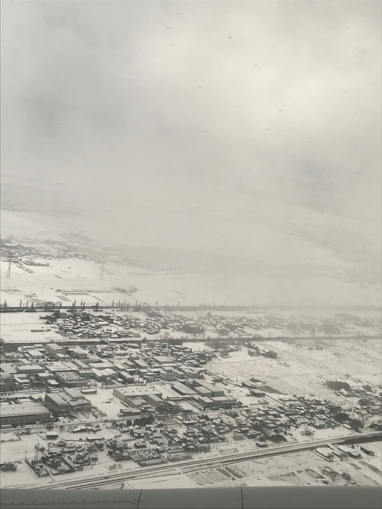 しばらくしたら、飛行機は着実に下降し、雪が積もる新潟空港に無事、着陸した。