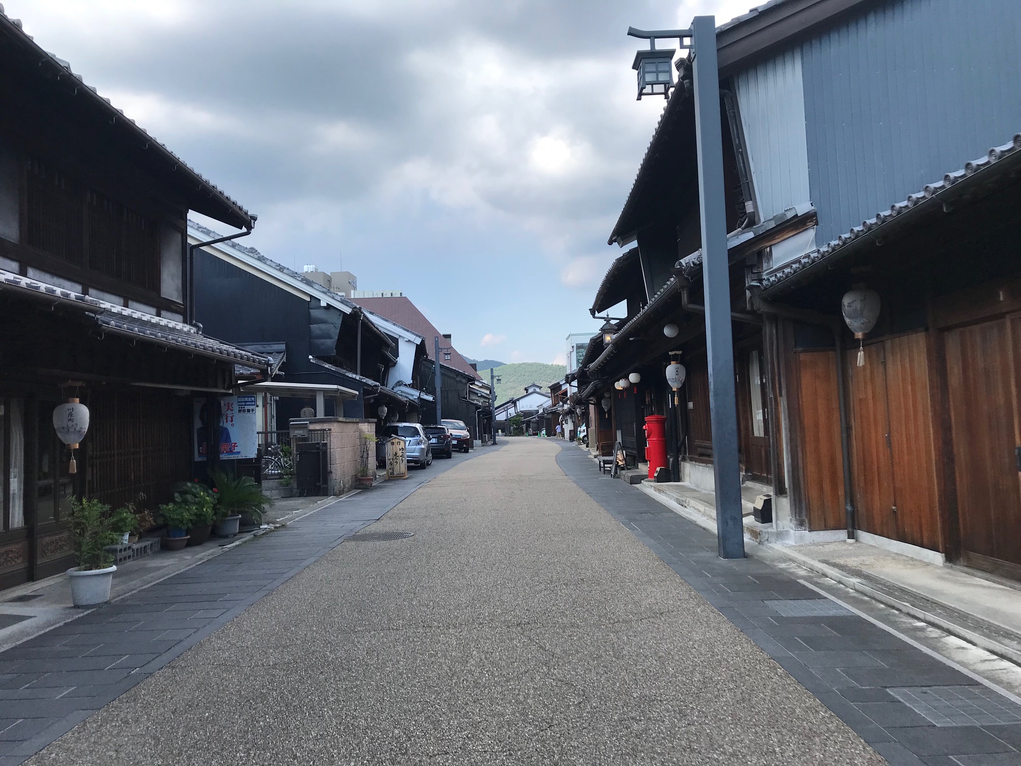 暑い暑いといいながら、3分ほど。下の写真の街並みを歩きながらポストの前で止まる。