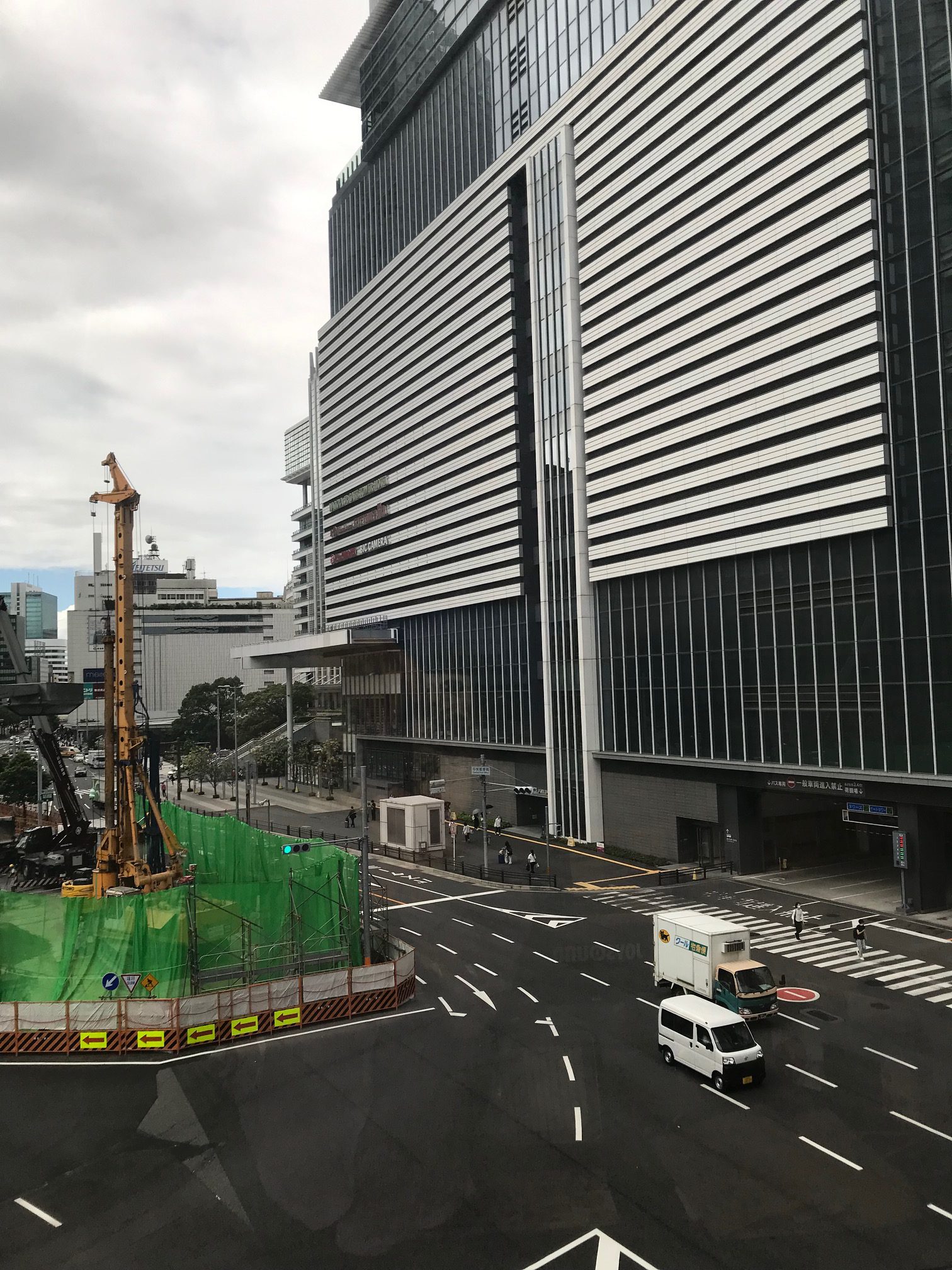 朝なのでカーテンを開けると、駅前の景色が広がり不思議な気分。