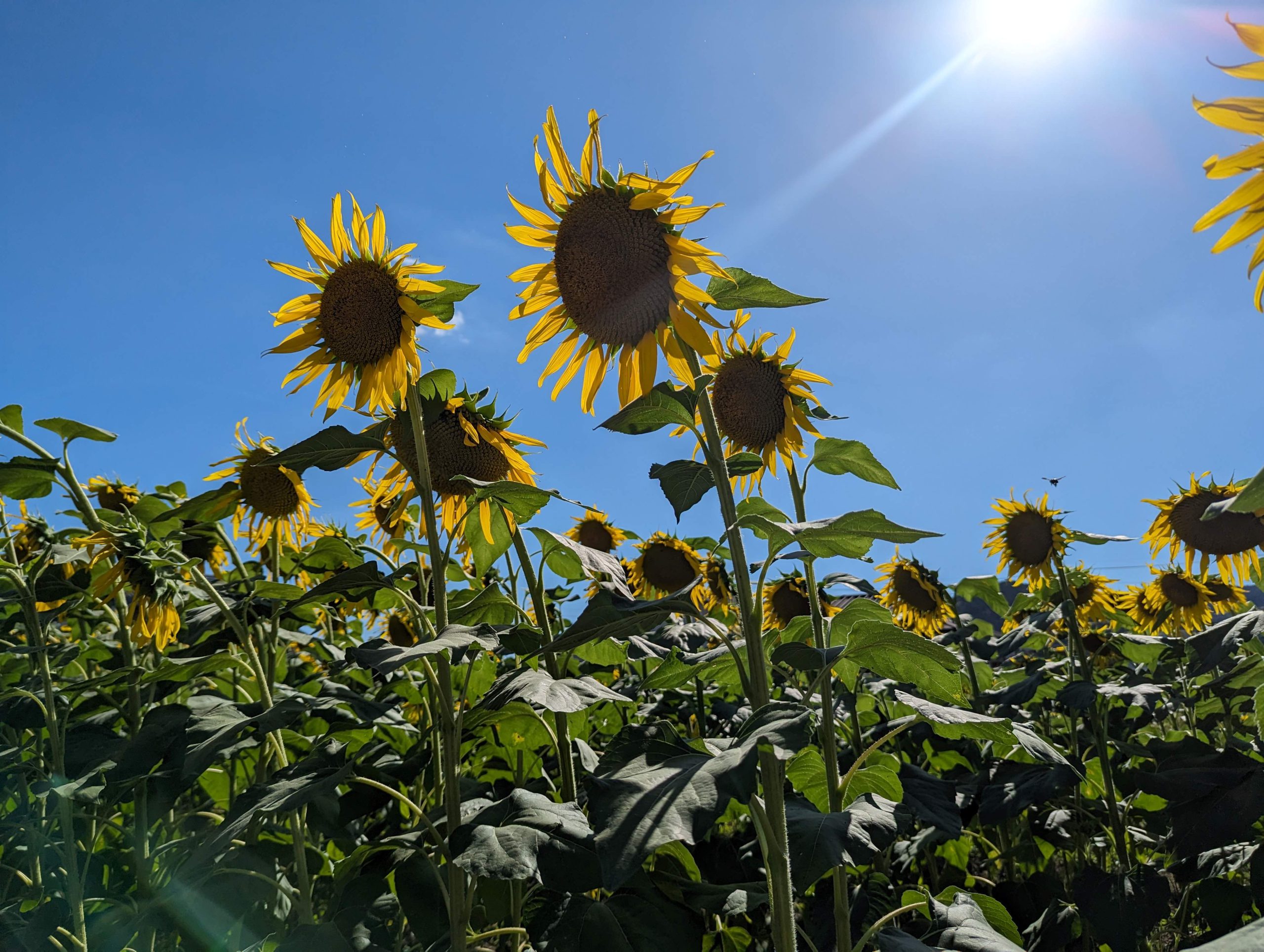 撮った方もさぞかし暑かったと思うが、ずっとここに立っているひまわりたちに、