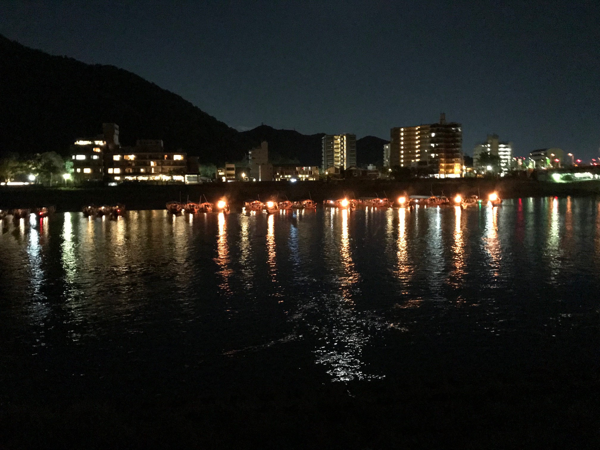 夜はこんな風にかがり火や鵜飼い船の灯りが水面に映り、