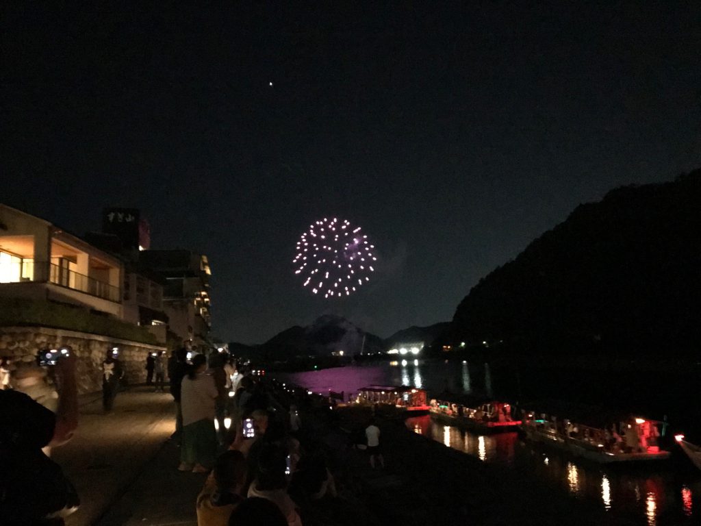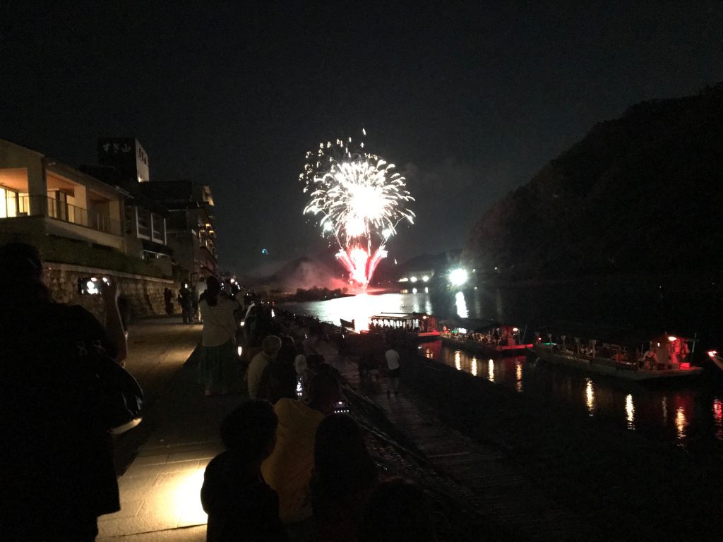 最終日は、花火が打ち上げられるため、遊覧船に乗って鵜飼を楽しむ人以外に、