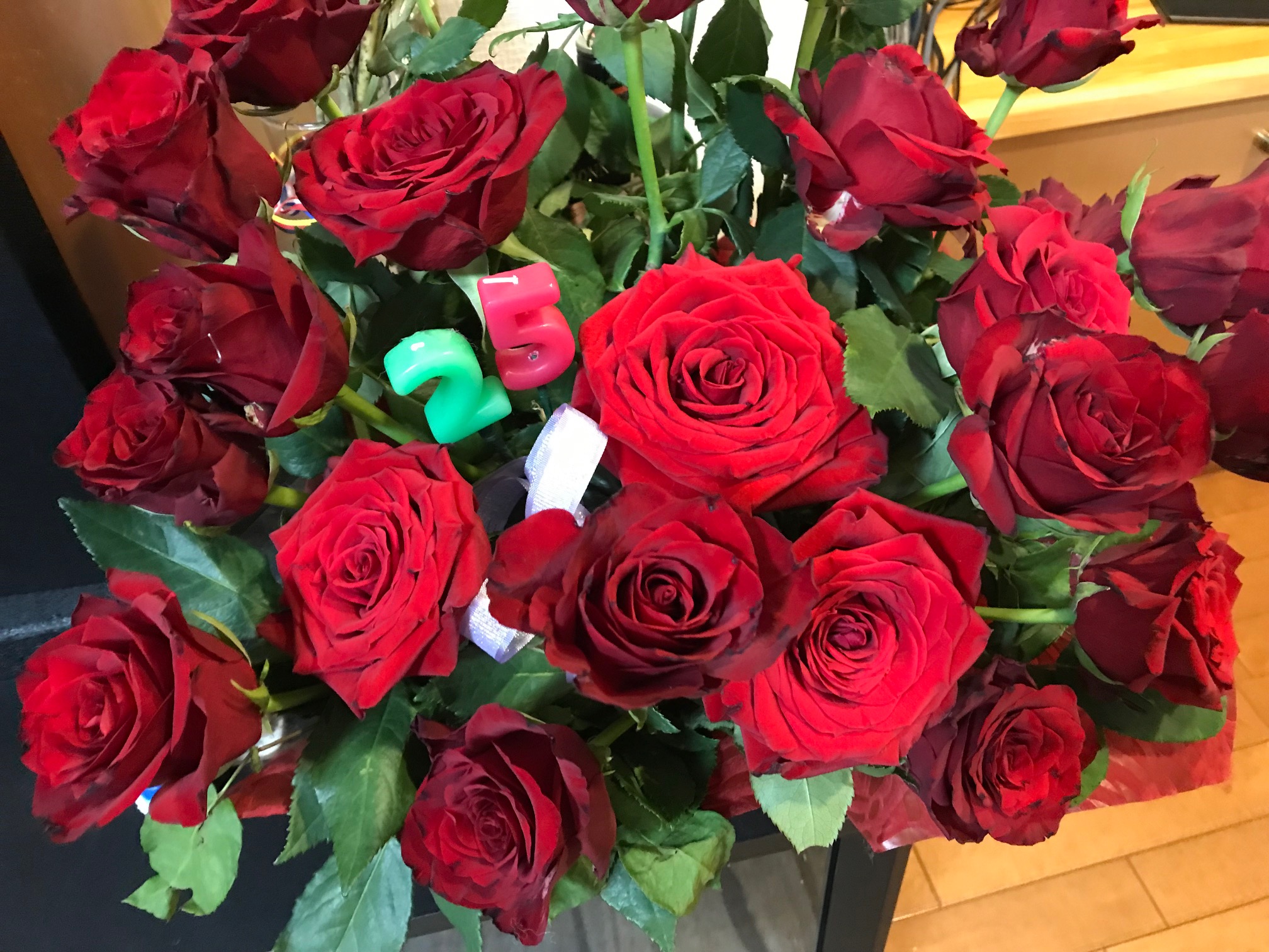 この画像は横浜から届いたバラの贈り物。25というキャンドルがかわいらしい。