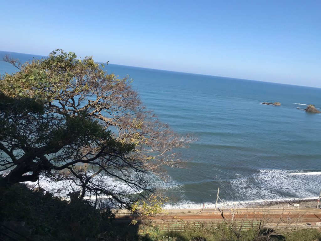 秋の晴天の日本海。女将さんの笑顔が浮かんで見えた。