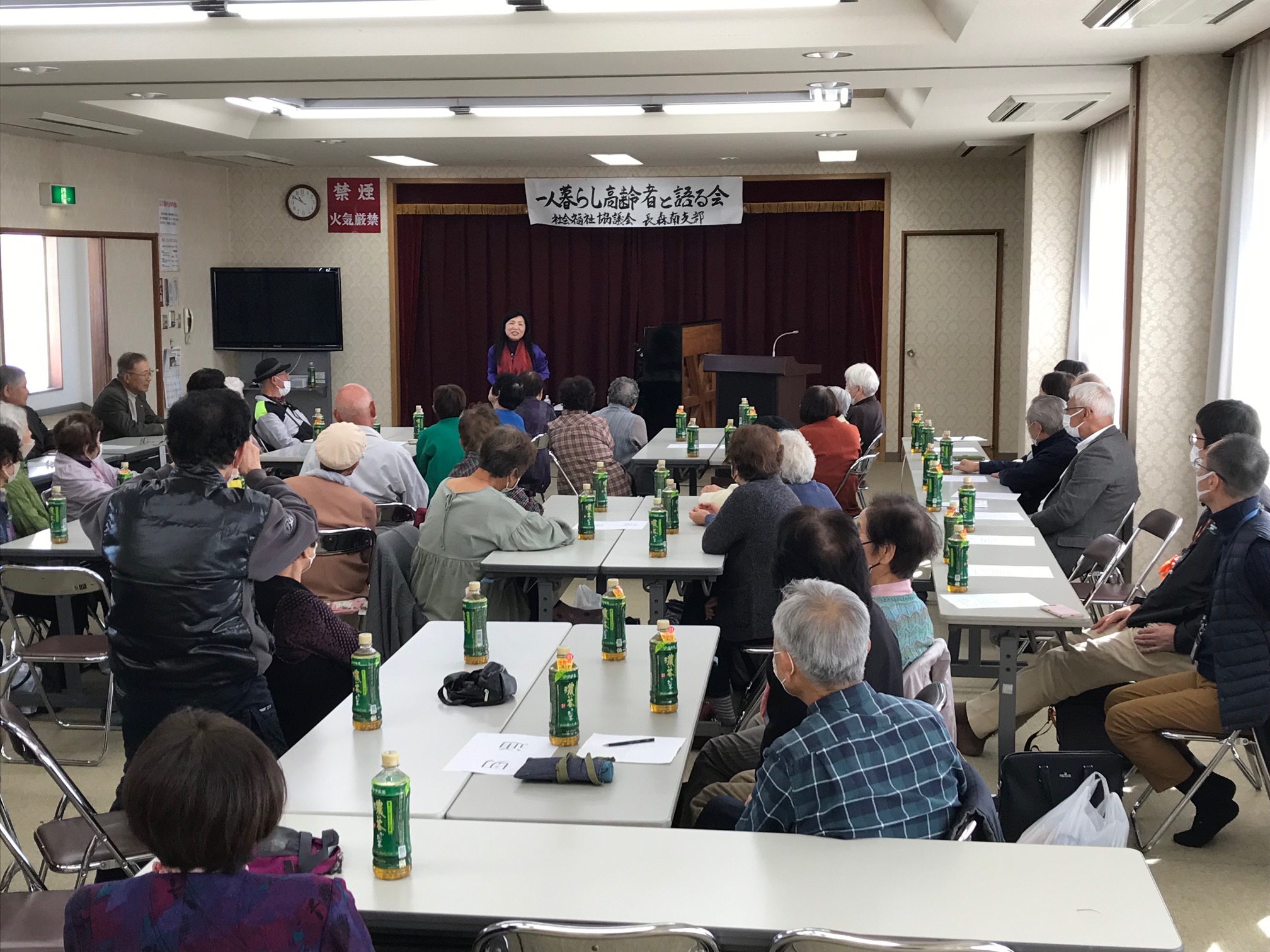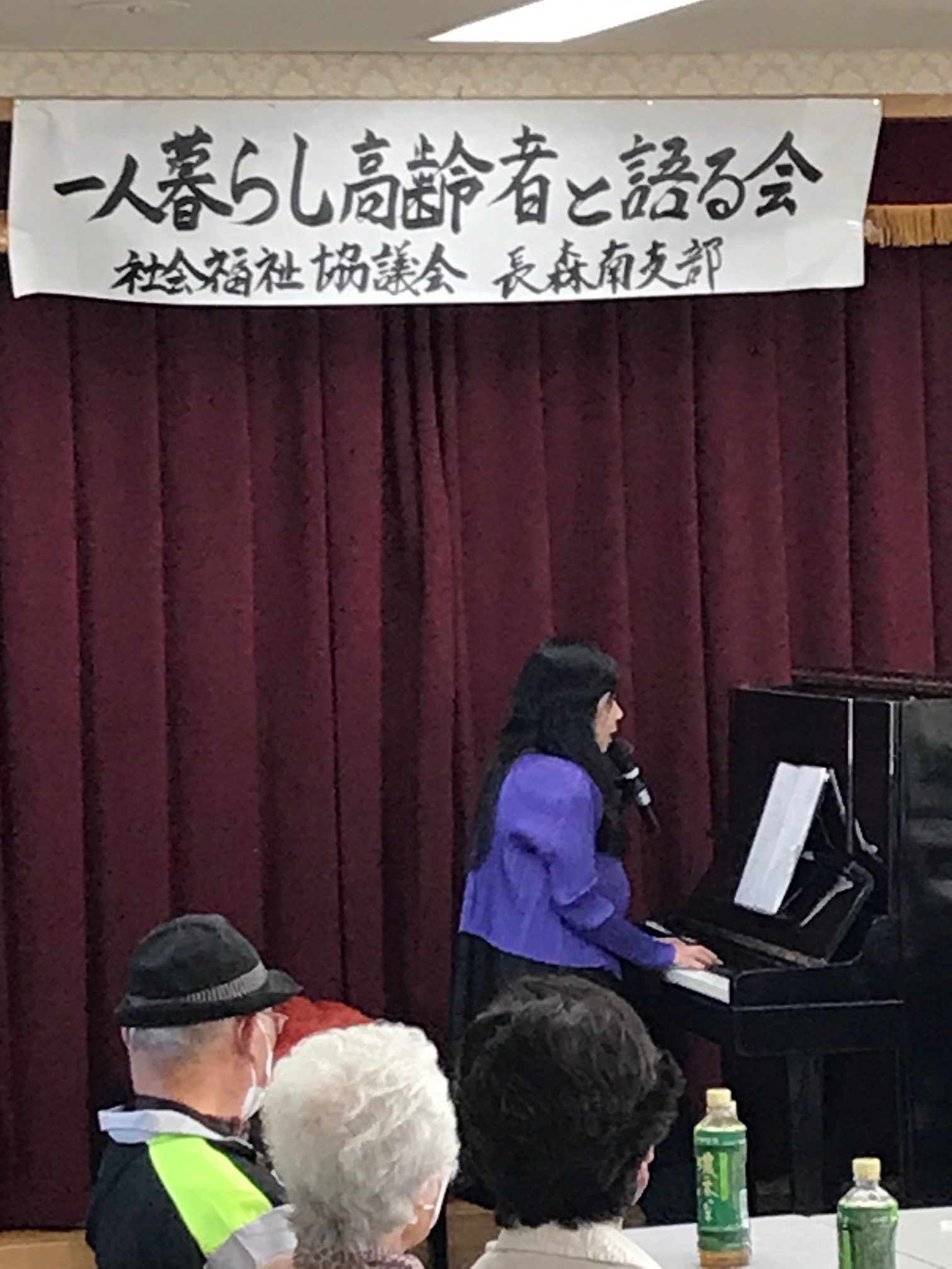 60名ほどの対象者と、関係者で70名以上の人が集い、演奏を聴いていただいた。初めてお会いする方がほとんどであったが、さすが皆さん、元気に一人暮らしをがんばっておられるので、会場への階段の昇降はご苦労されている方もおられたが、意識はしっかり、お元気である。こちらの話にも、ビンビン反応され、手拍子もあり、あっという間に時間は過ぎた。声が良く出ていたせいか、それに驚かれた方もおられ、お客さんのノリがいいと、こちらも調子が良くなるものだとうれしく思った。