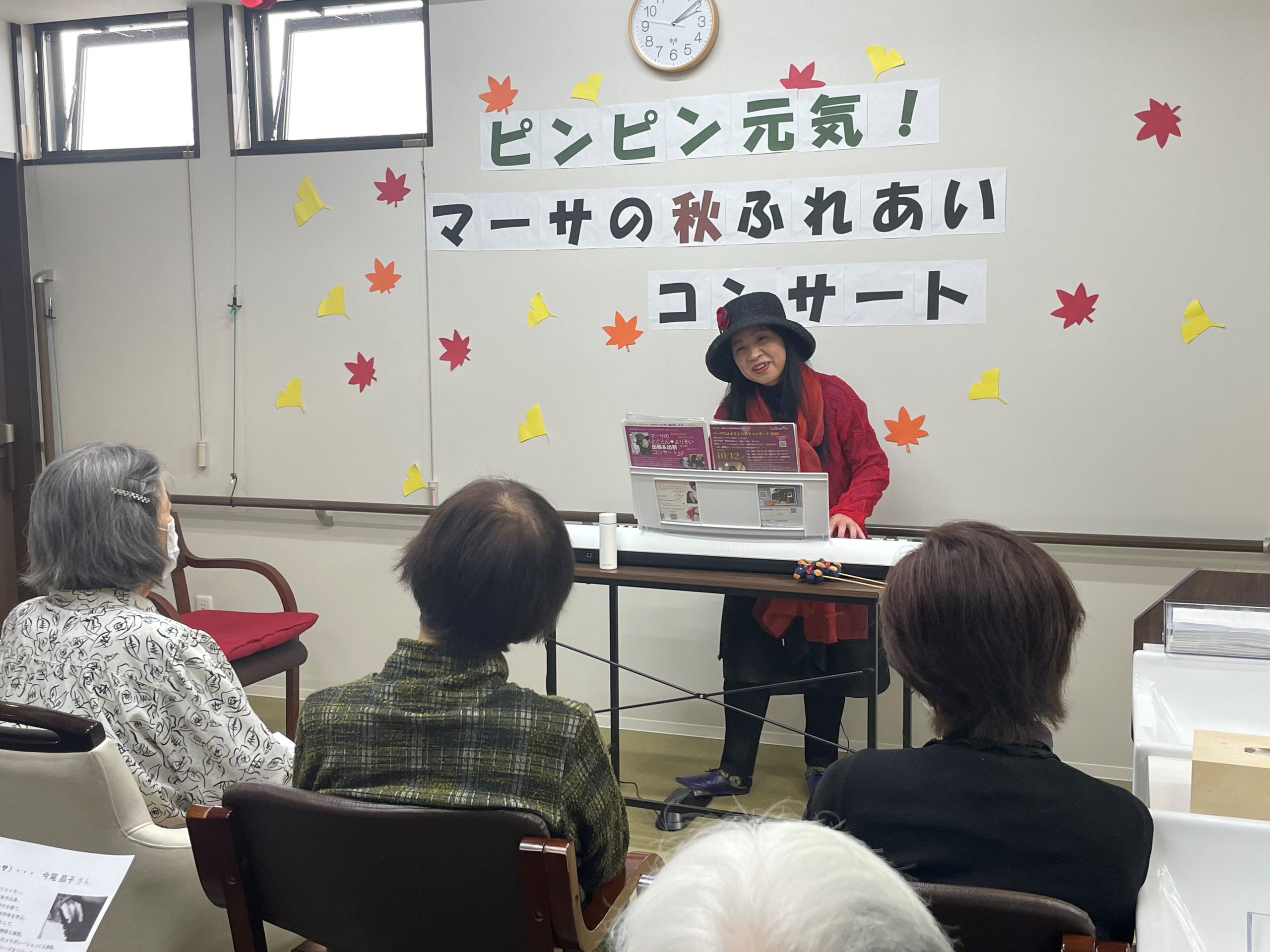 準備するところもずっと見ておられる。こちらの今回のタイトルは「ピンピン元気!マーサの秋ふれあいコンサート」である。
