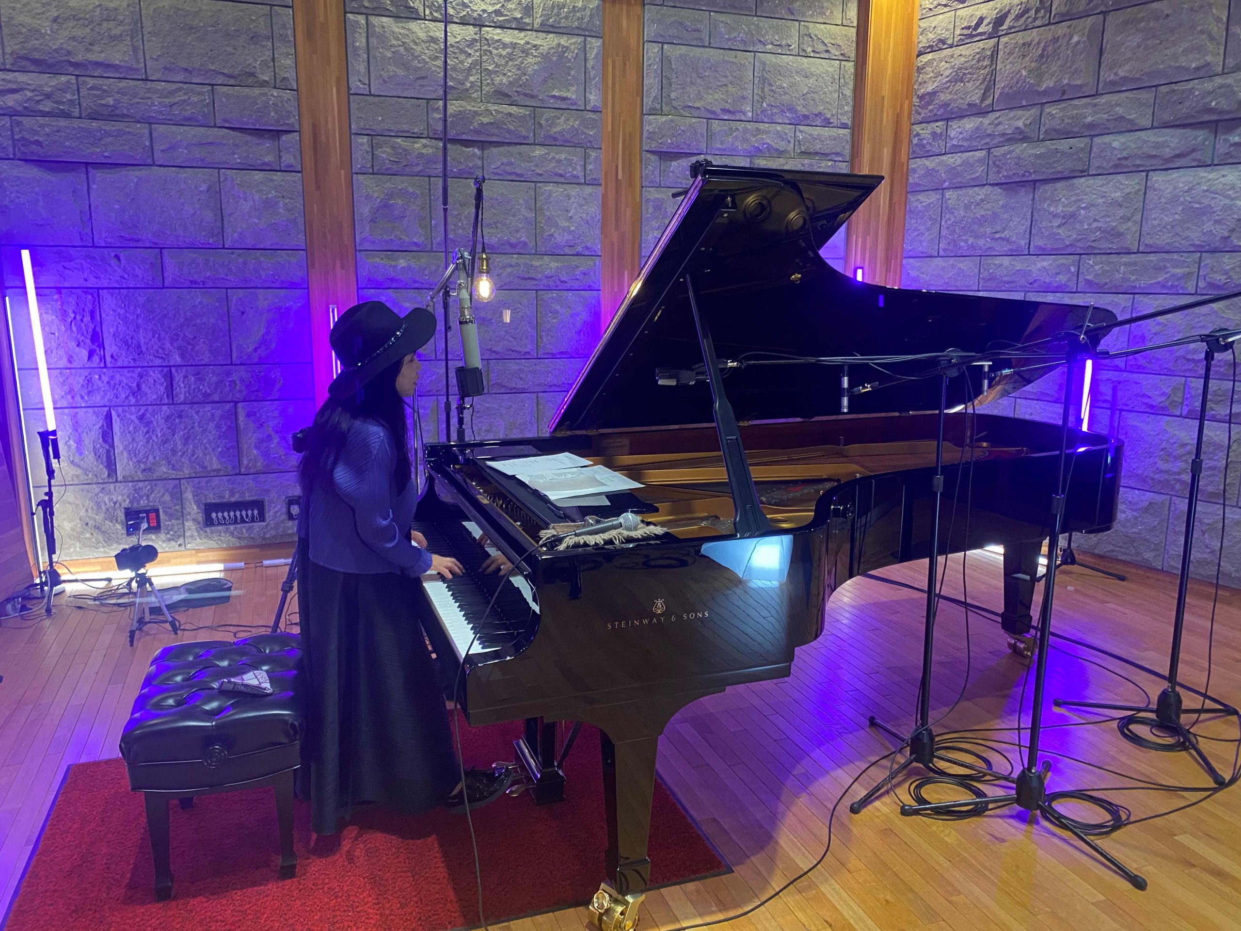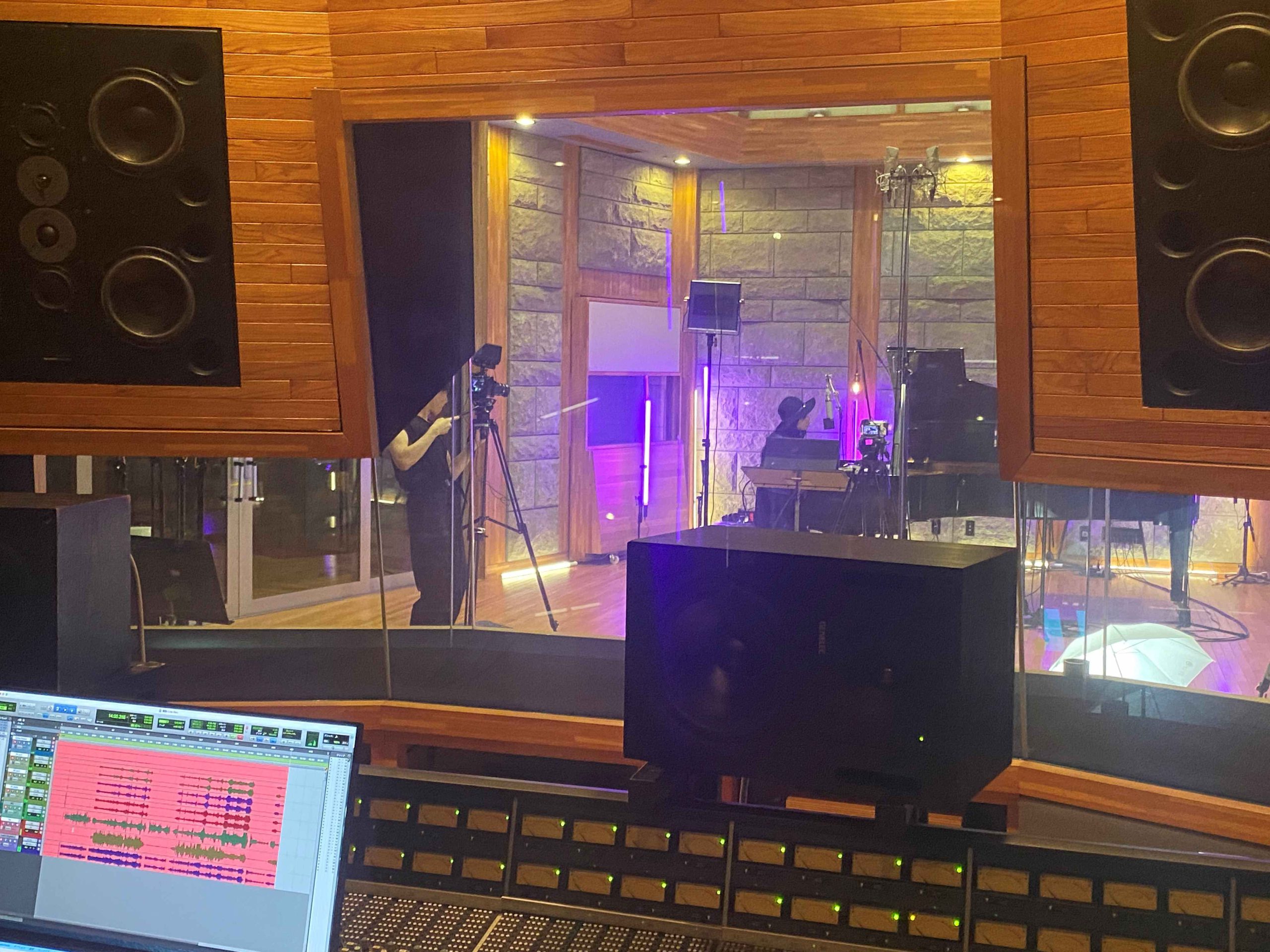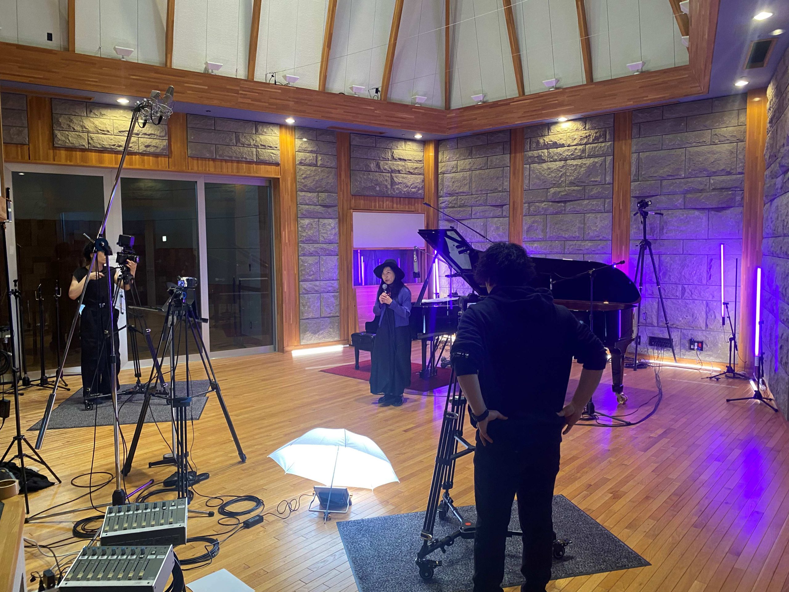 その撮影、録音時の様子を撮影してもらったものがこの写真。