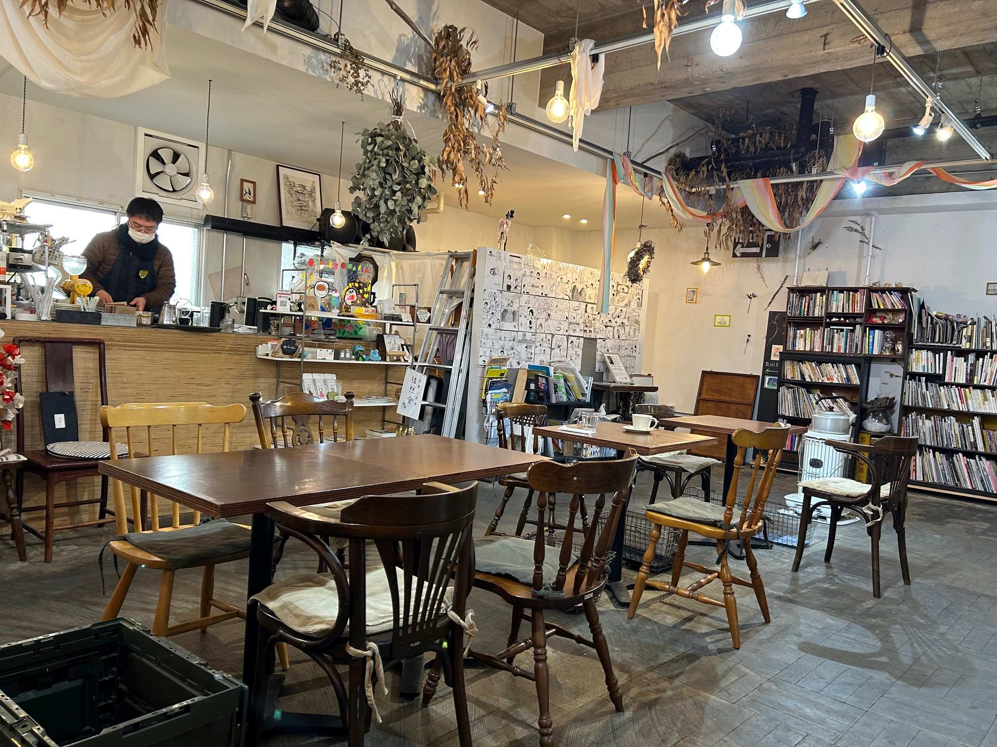 店内には地元のアーチストたちの作品や告知ツールがきれいに掲示されたり、
