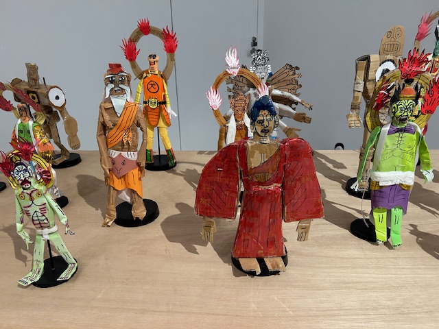 この作品展では、絵画だけではなく、段ボールを使ったユニークな人形や、アニメ