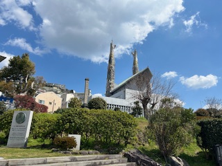 この写真は16世紀に、キリスト教を厚く信仰する26名の方たちが殉死された西坂という場所である。殉教の地に立つということだけで、特別な感情になる。