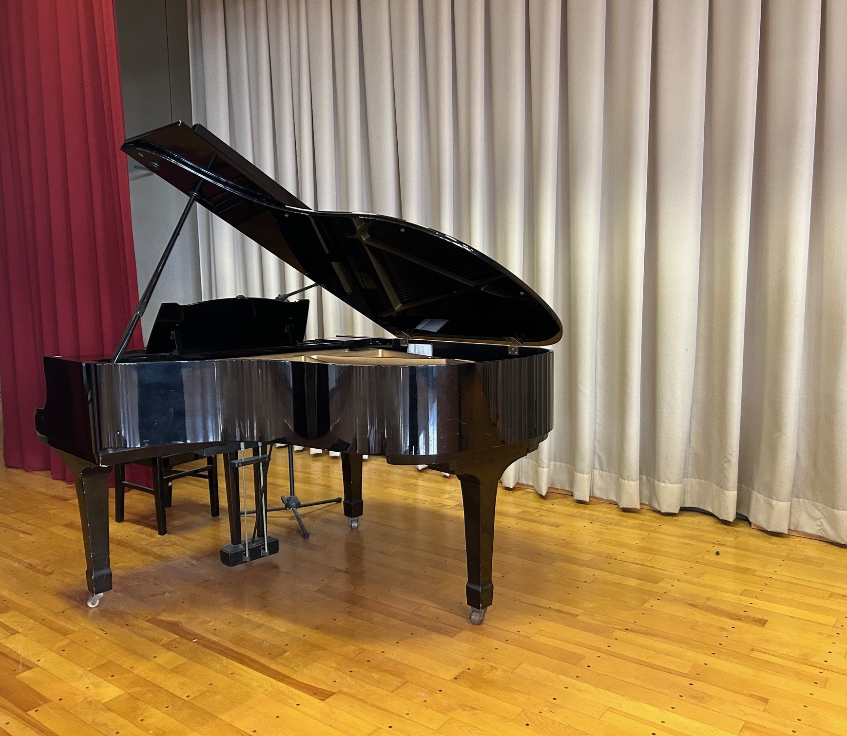 写真はステージ上にあるピアノ。もしかしたら、自分の卒業時に使われたときのもの
