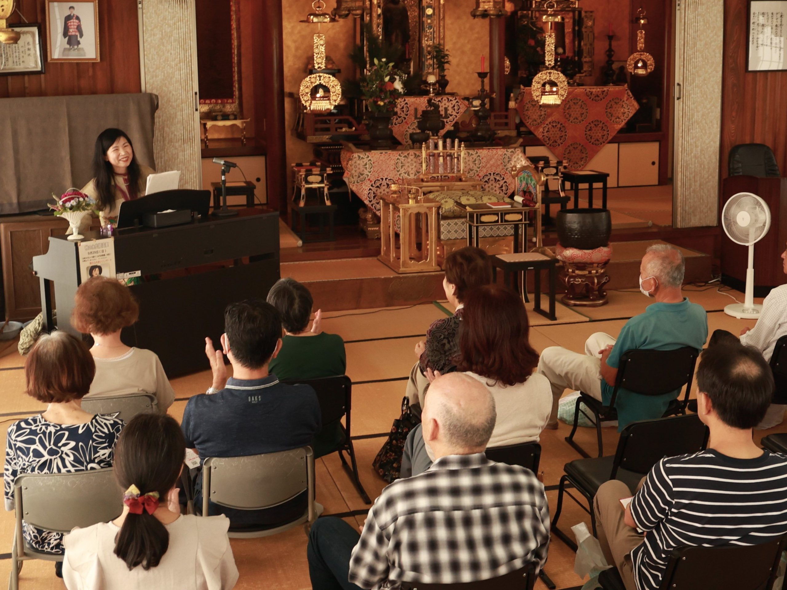 会場の本堂には、その前に行われた法要にご参加されたお寺の