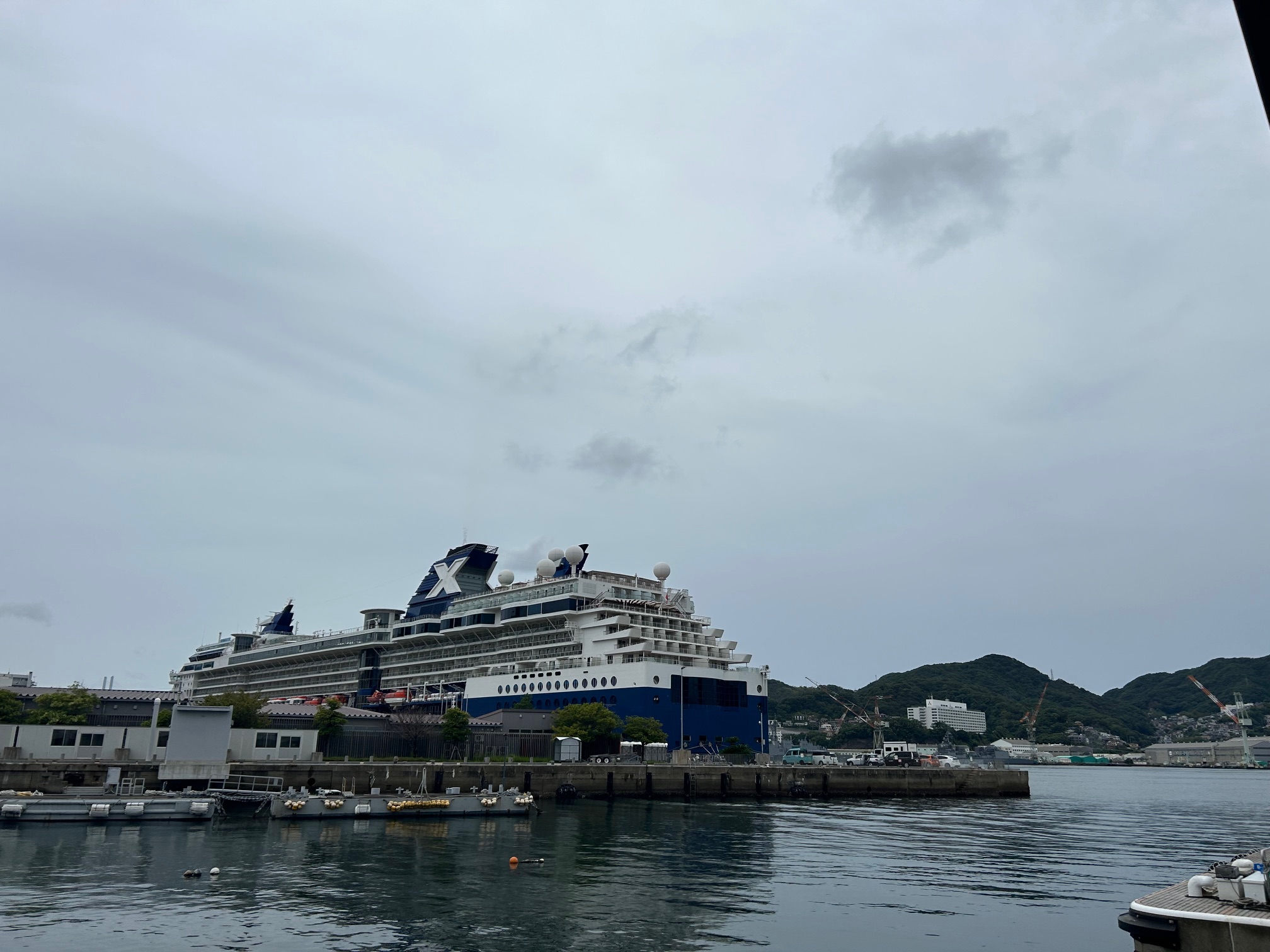 あれ、あの船はつい最近、横浜港でみたクルーズ船。同じ船が、長崎にも・・・。