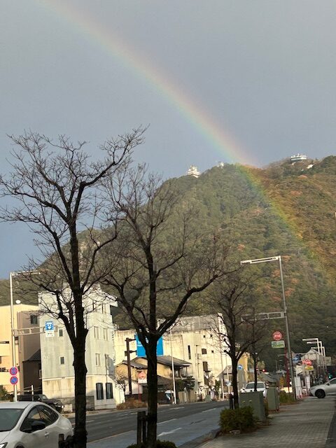 信長が棲んだ岐阜城と虹のコラボレーションに遭遇。