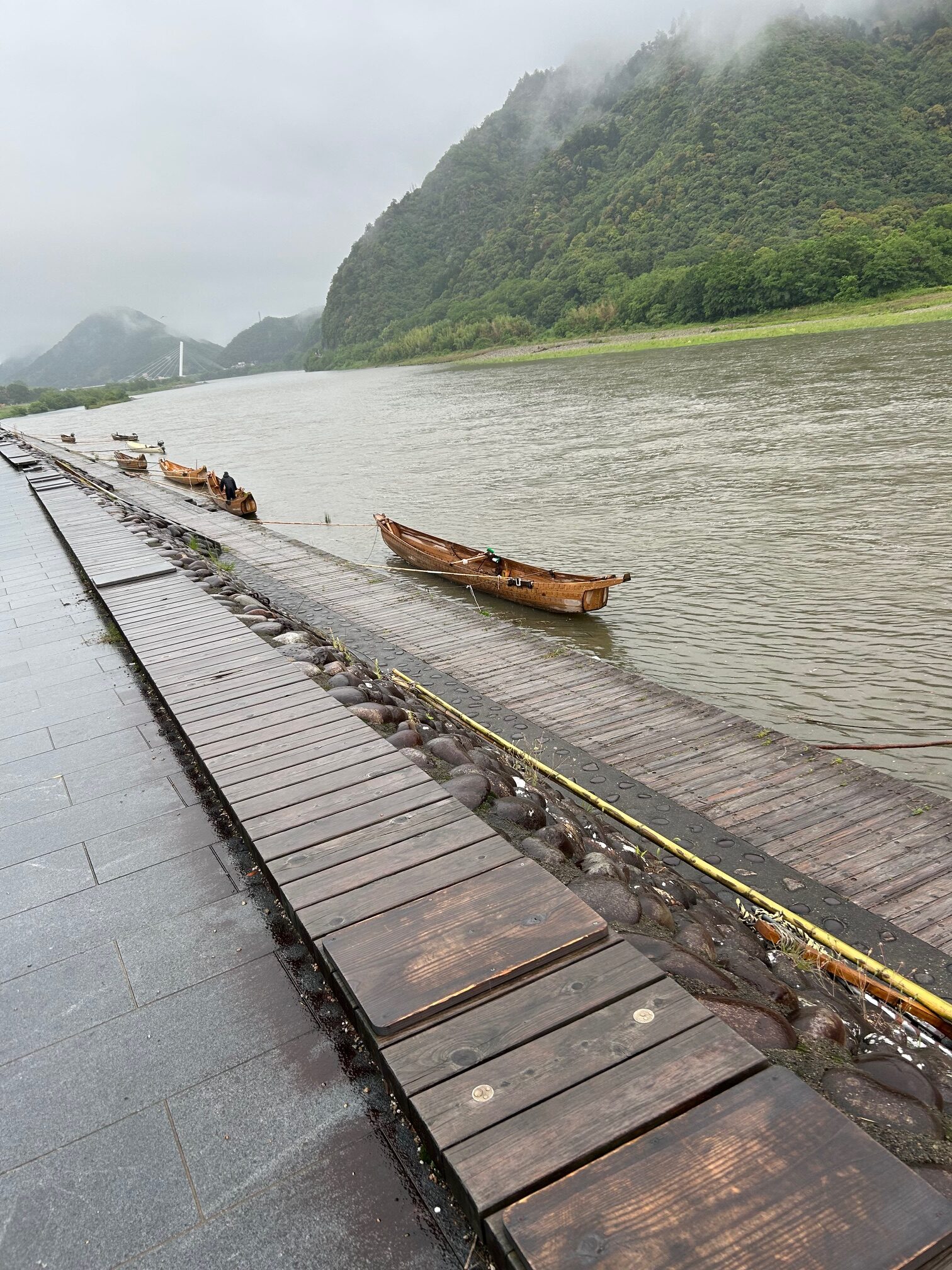 写真は先週の雨上がりを待つ鵜舟・・・。