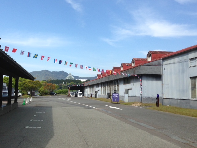 普段の平日は、静かな工場内であるが、周年事業イベント期間だからか、万国旗で場内を飾っているのも面白い。
