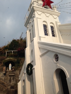 そこを知ったのは「神の島教会」という教会があるということから。大浦、浦上といった天主堂に比すれば観光客もほとんどいない、静かな教会だ。アイランド オブ ゴッドか。この世に、神の島という町があるとは。この教会こそが、町ができる中心的存在だったのであろう。高台にある真っ白い教会にあるマリア像の優しい美しさに思わず手を合わせ、あたりを見下ろすと、海に向かって建つ大きなマリア像を発見。なんだ、あれは!と、吸い寄せられるように近づいていく。すると、なんとこの教会の人々が、フランシスコ・ザビエル渡来400周年を記念して大正時代に建てたマリア像を1980年代に再建したものであった。100年以上前に、ザビエルの功績に感謝し、また大航海時代の難行をたたえ、この像を建立された人がいたということに胸が熱くなった。100年前の記念碑もそのまま残されている。ちょうど1年前に見たリスボンの大航海出発の地、そして今回発見した大航海の着地点のひとつ。偶然とは思えないザビエル縁・・。今年も、心の大航海を目指せ!という天のメッセージかと勝手に妄想した。
