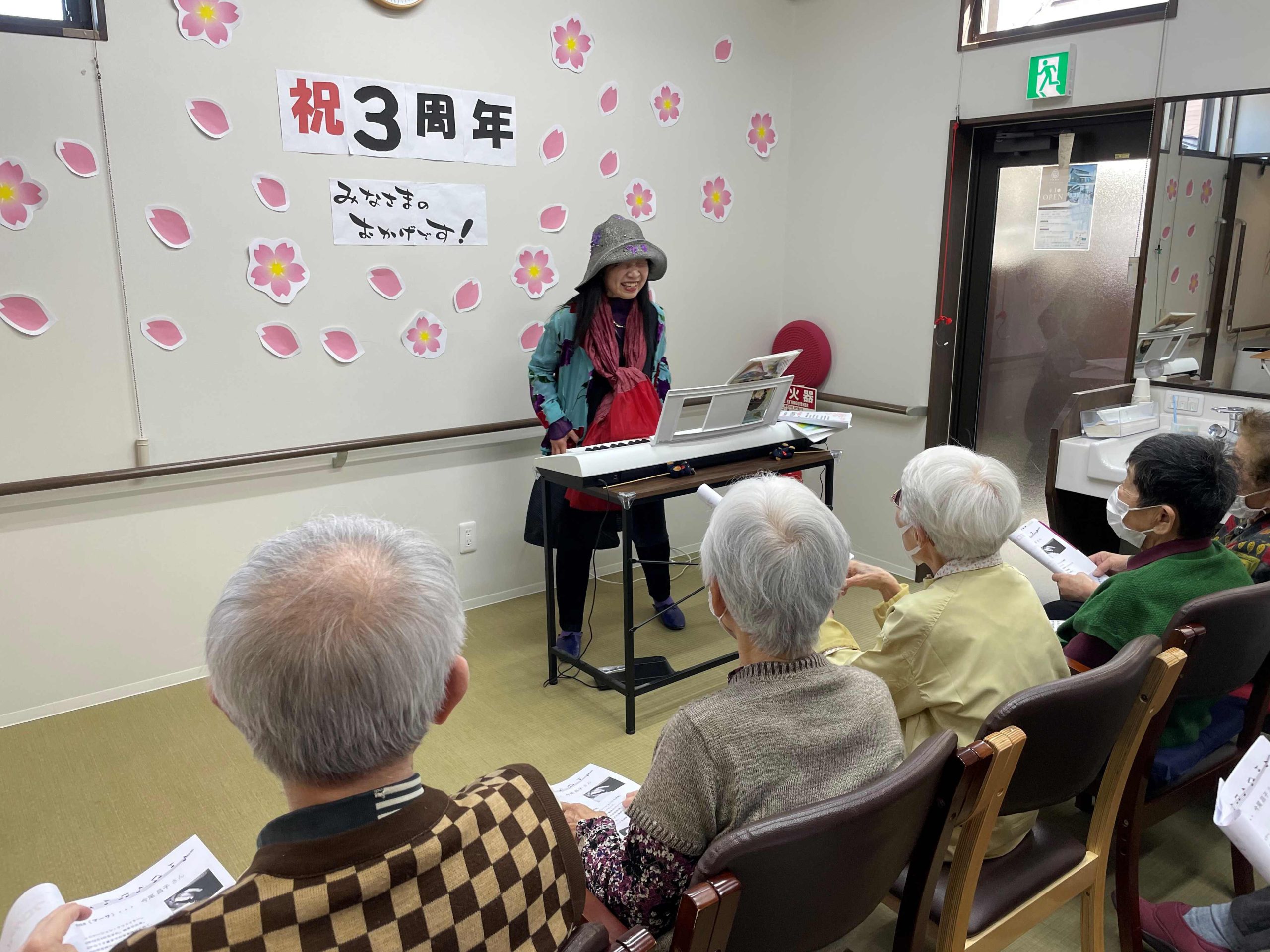 約1時間、持ち込んだ楽器で弾き歌いながら、地元、旅先、季節、親の思い出・・
